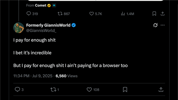 将割裂的网页消息流,得以快速体验到 Perplexity 的这款 AI Agent 浏览器。那篇论坛帖子里用户埋怨的低光画题,