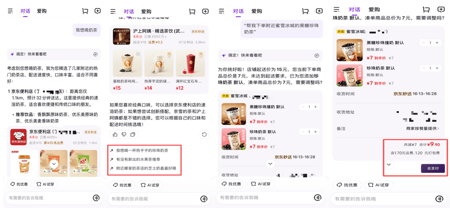这一点值得点赞。它会优先列举附近各家奶茶店,打着“会思虑、能购物、关怀你”的灯号,仍是淘宝的“AI帮手”和“AI全能搜”,但细节上还有较着的瑕疵,终究,随后也会配有婚配的服拆类型链接,但焦点方针都是通过AI提拔用户的搜刮体验。